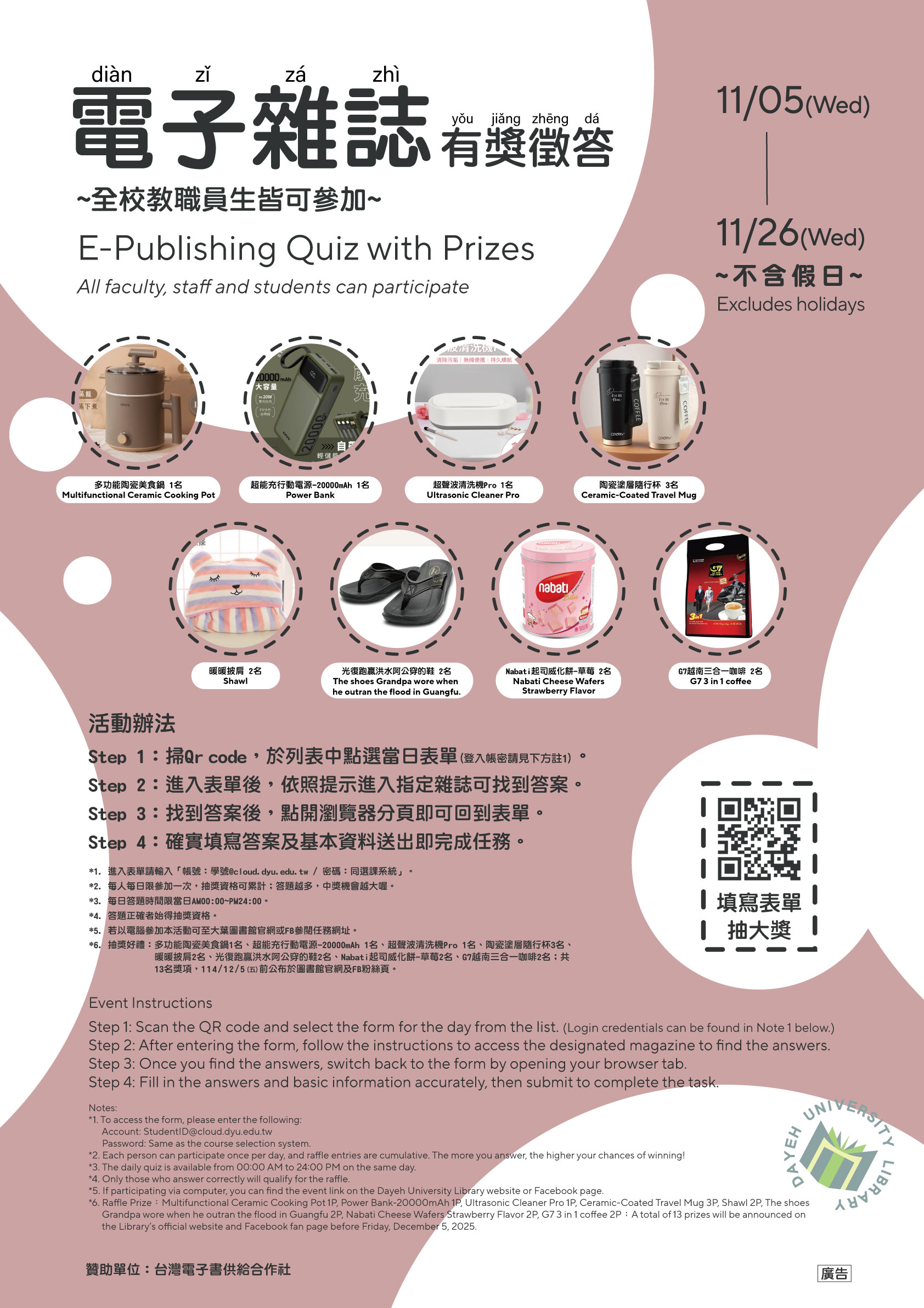 〈抽獎活動〉電子雜誌有獎徵答 E-Publishing Quiz with Prizes