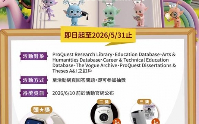 《抽獎活動》「2026 ProQuest 有獎徵答活動」,和PQ蛋一起在知識的世界裡冒險吧